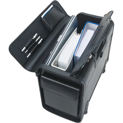 Hochwertiger Pilotenkoffer mit Trolleysystem.