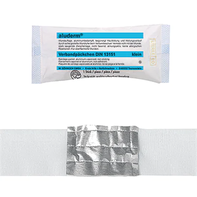 - Material der Kompresse: Polyestervlies, aluminiumbedampft