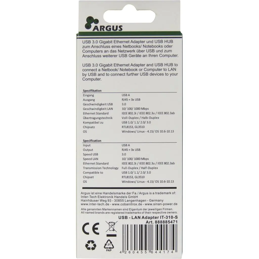 Argus IT-310-S - Hub - 3 x SuperSpeed USB 3.0 + 1 x 10/100/1000 - Desktop