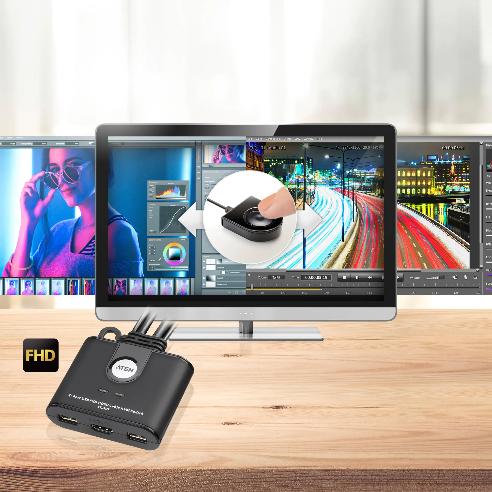 ATEN CS22HF - KVM-/USB-Switch - 2 x KVM / USB - 1 lokaler Benutzer - Desktop - Gleichstrom