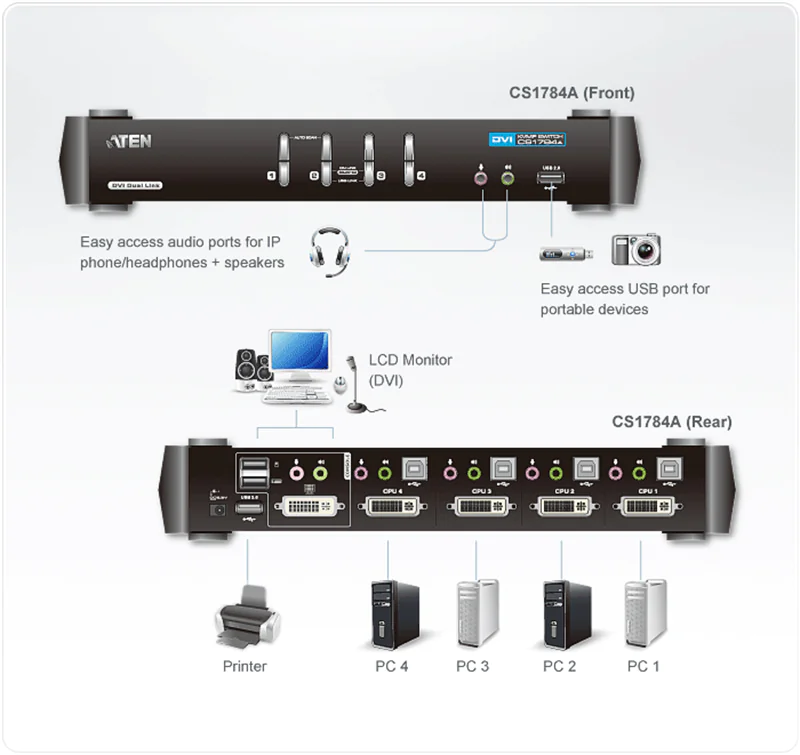 Produktbeschreibung | ATEN CubiQ CS1784A - KVM-/Audio-/USB-Switch - 4 Anschlüsse | |||