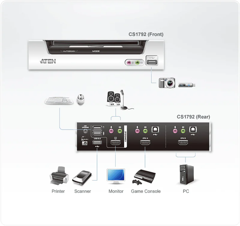 Produktbeschreibung | ATEN CubiQ CS1792 USB 2.0 HDMI KVMP Switch - KVM-/Audio-Switch - 2 Anschlüsse | |||