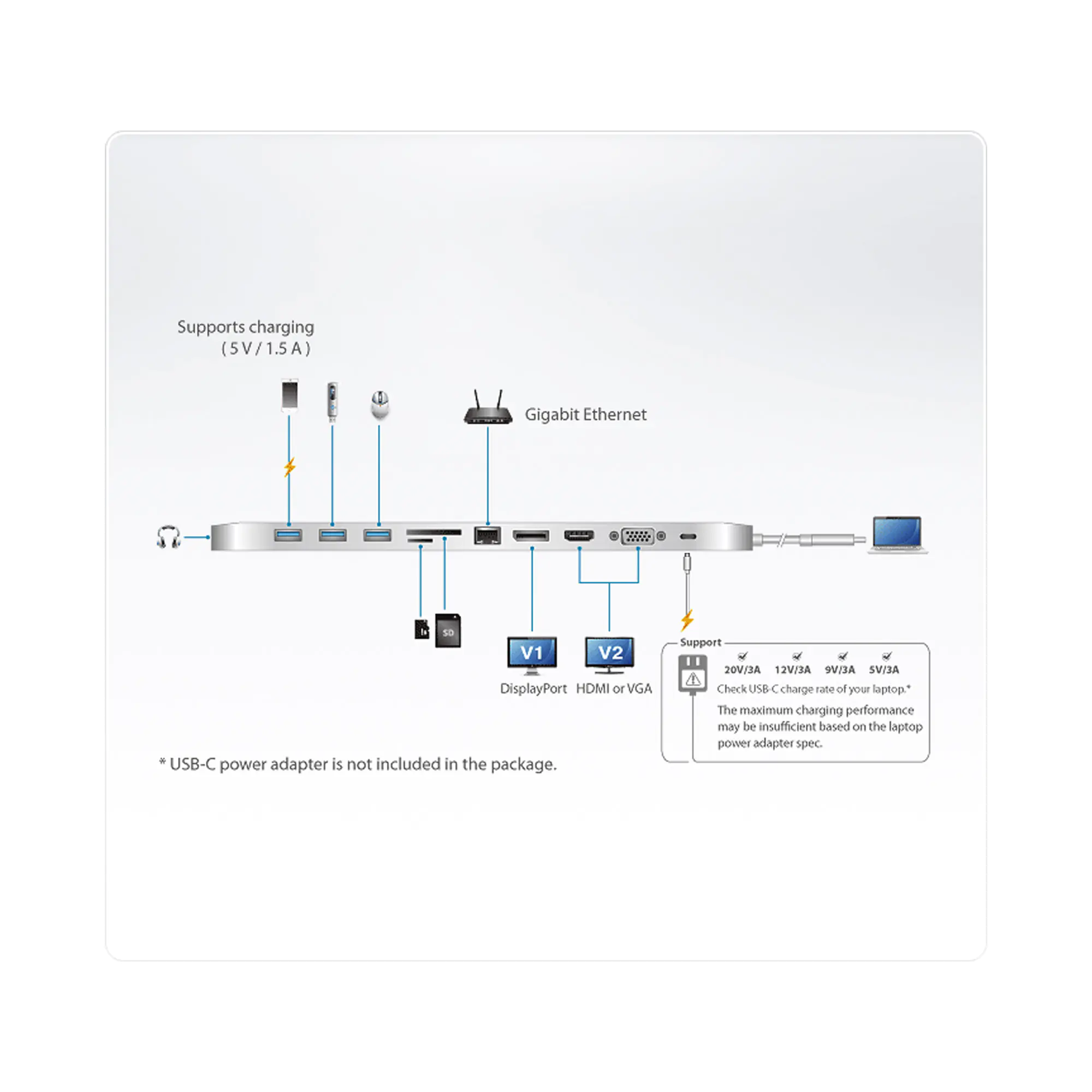 ATEN UH3234 - Dockingstation - USB-C - VGA, HDMI, DP - 1GbE - für ATEN UEH4002A