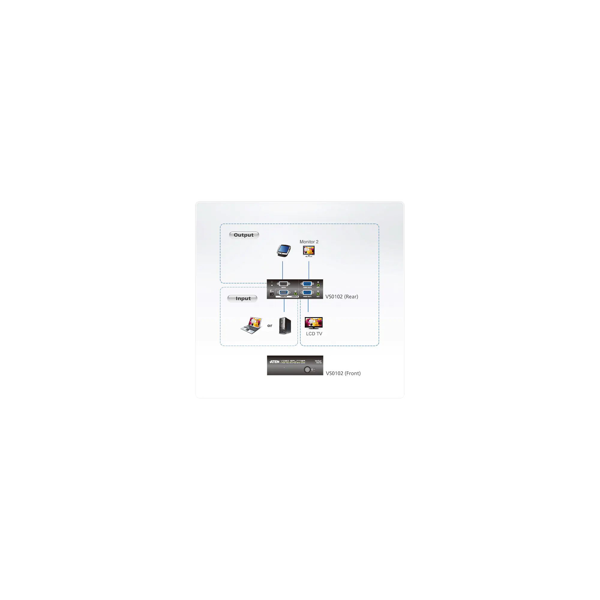 ATEN VanCryst VS0102 - Video-/Audio-Splitter - 2 x VGA + 2 x Audio - Desktop