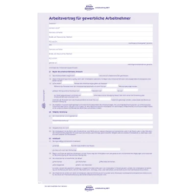 Der Arbeitvertrag ist speziell auf gewerbliche Arbeitnehmer zugeschnitten. Neben einem festen gleichbleibendem Monatsgehalt sind im Arbeitsvertrag auch die Tätigkeiten klar geregelt sowie Arbeitszeit, Beginn des Arbeitsverhältnisses, Probezeit, Kündigungsfristen und Urlaubsanspruch. Der 3-seitige Arbeitsvertrag für gewerbliche Arbeitnehmer von Avery Zweckform ist eine zuverlässige, bewährte Grundlage bei der Einstellung von neuen Mitarbeitern und wird regelmäßig von Rechtsexperten auf Änderungen im Arbeitsrecht geprüft und angepasst.