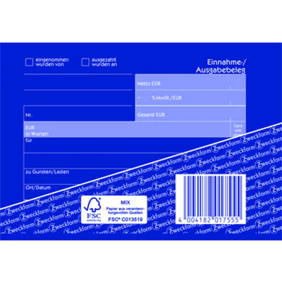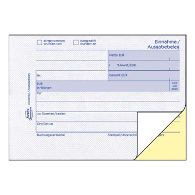 Der Einnahme-/Ausgabebeleg sorgt für eine lückenlose Buchhaltung der Einnahmen und Ausgaben mit fälschungssicherem Dokumentendruck. Die Kassenformulare und Formularbücher von Avery Zweckform sind zuverlässige, bewährte Hilfen für Ihre Buchhaltung und Steuer und werden regelmäßig von Rechtsexperten geprüft.