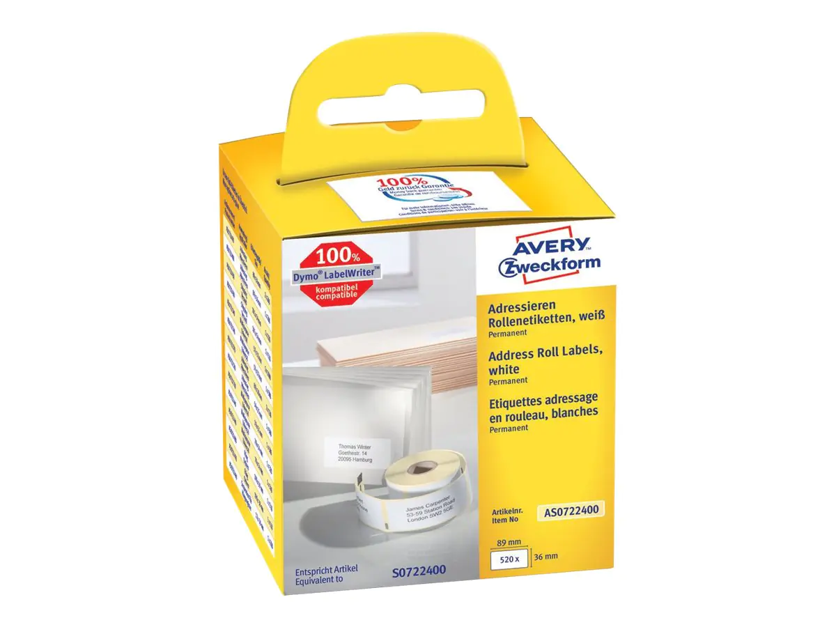 Die Rollenetiketten zeichnen sich durch eine überdurchschnittlich gute Klebkraft aus (gemessen nach FTM2 und FTM9 auf allen gängigen Oberflächen). Sie sind frei von Bisphenol A (BPA). Wir garantieren vollste Zufriedenheit für die Avery Zweckform Rollenetiketten, oder Sie erhalten Ihr Geld zu 100 % zurück (Teilnahmebedingungen unter www.avery-zweckform.de). Bedrucken Sie je nach Bedarf einzelne oder auch mehrere Adressaufkleber schnell und einfach.