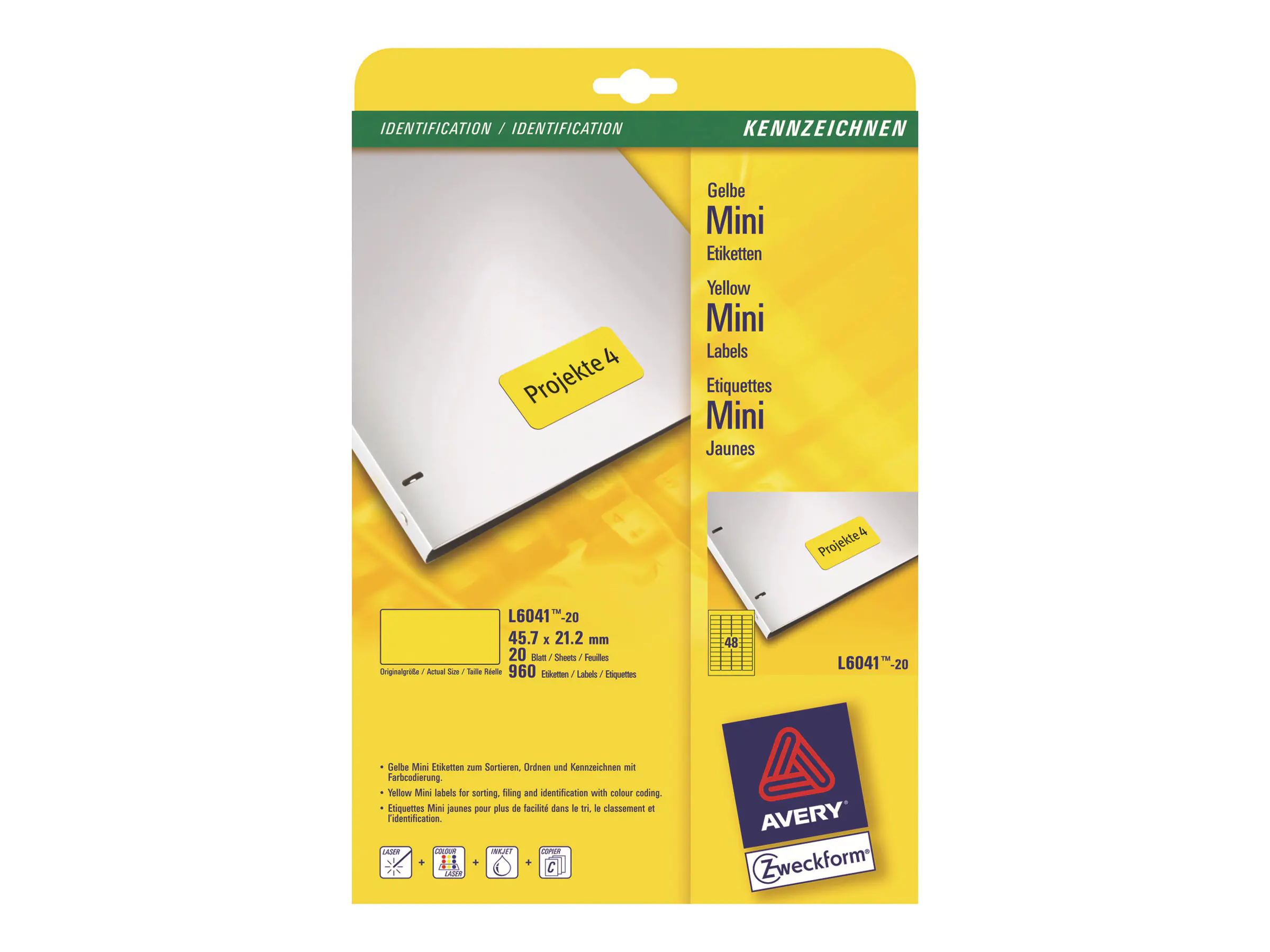 Farbige Mini-Etiketten verleihen Ihren Beschriftungen mehr Aufmerksamkeit. Sparen Sie Zeit mit anwendungsfreundlichen Druckvorlagen und benutzerfreundlicher Software - kostenloser Download unter www.avery.eu/print.