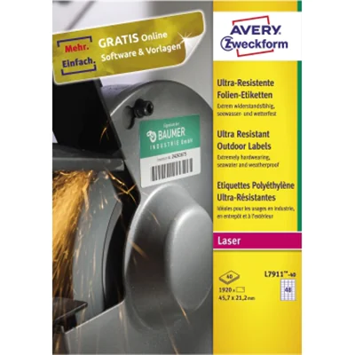 Haftung auch auf schwierigen Oberflächen und eignen sich besonders zur Kennzeichnung in der Produktion und im Lager, zur Beschriftung von Containern oder zur Beschilderung. Extrem widerstandsfähig und seewasserfest. Gestalten und drucken Sie Ihre Aufkleber schnell und einfach - mit den kostenlosen Avery Zweckform Etiketten Vorlagen und Software-Lösungen unter www.avery.eu/print oder den im Microsoft® Office Paket integrierten Basis-Vorlagen.