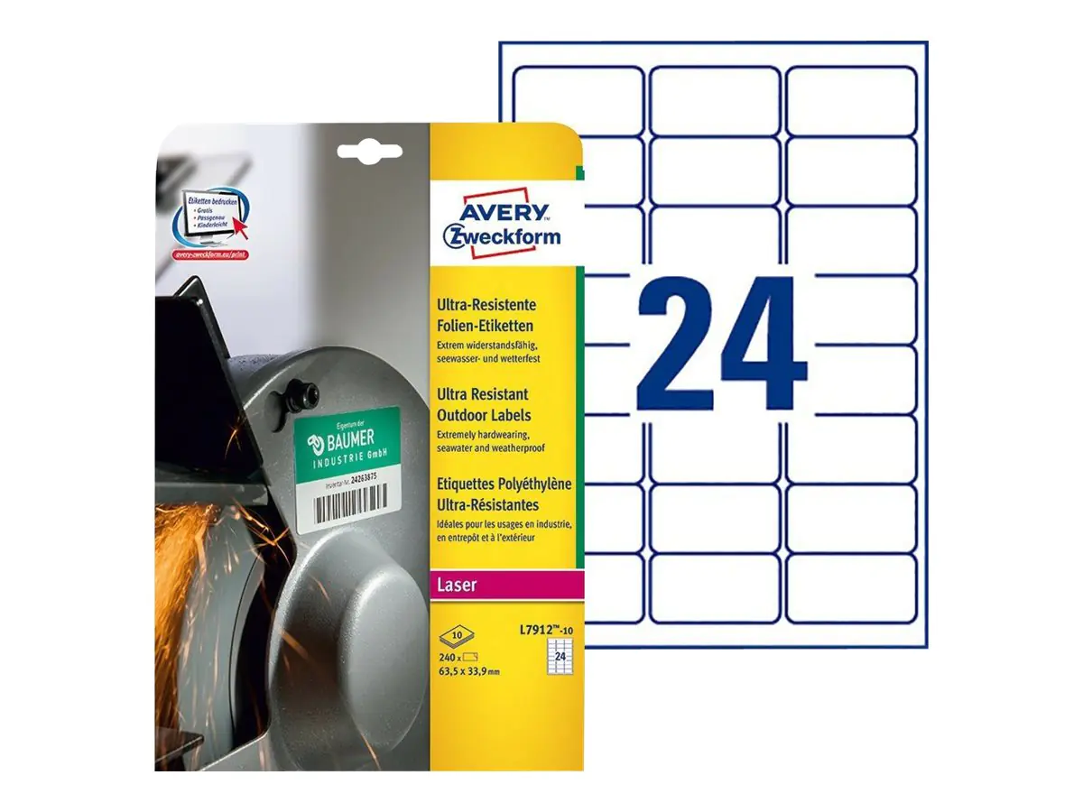 Die ultra-resistenten Folien-Etiketten von AVERY ZWECKFORM zeichnen sich durch eine hohe Strapazierfähigkeit für höchste Beanspruchungen im Innen- und Außenraum aus. Durch die Haftung auch auf schwierigen Oberflächen, eignen sie sich besonders zur Kennzeichnung in der Produktion und im Lager, zur Beschriftung von Containern oder zur Beschilderung. Die Folienetiketten sind ultra-widerstandsfähig. Zudem sind die Etiketten resistent gegen viele Lösungs- und Reinigungsmittel. Gestalten und drucken Sie Ihre Aufkleber schnell und einfach - mit den kostenlosen Avery Zweckform Etiketten Vorlagen und Software-Lösungen unter www.avery.eu/print oder den im Microsoft® Office Paket integrierten Basis-Vorlagen.