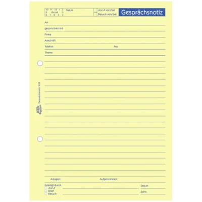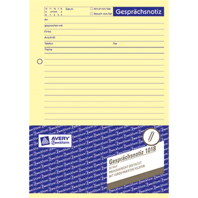 Nie mehr etwas vergessen - mit der Gesprächsnotiz von Avery Zweckform. Das Formular kann vielfach eingesetzt werden - ob zur Gesprächsvorbereitung, als Bestätigung, Gedankenstütze oder als Protokoll.