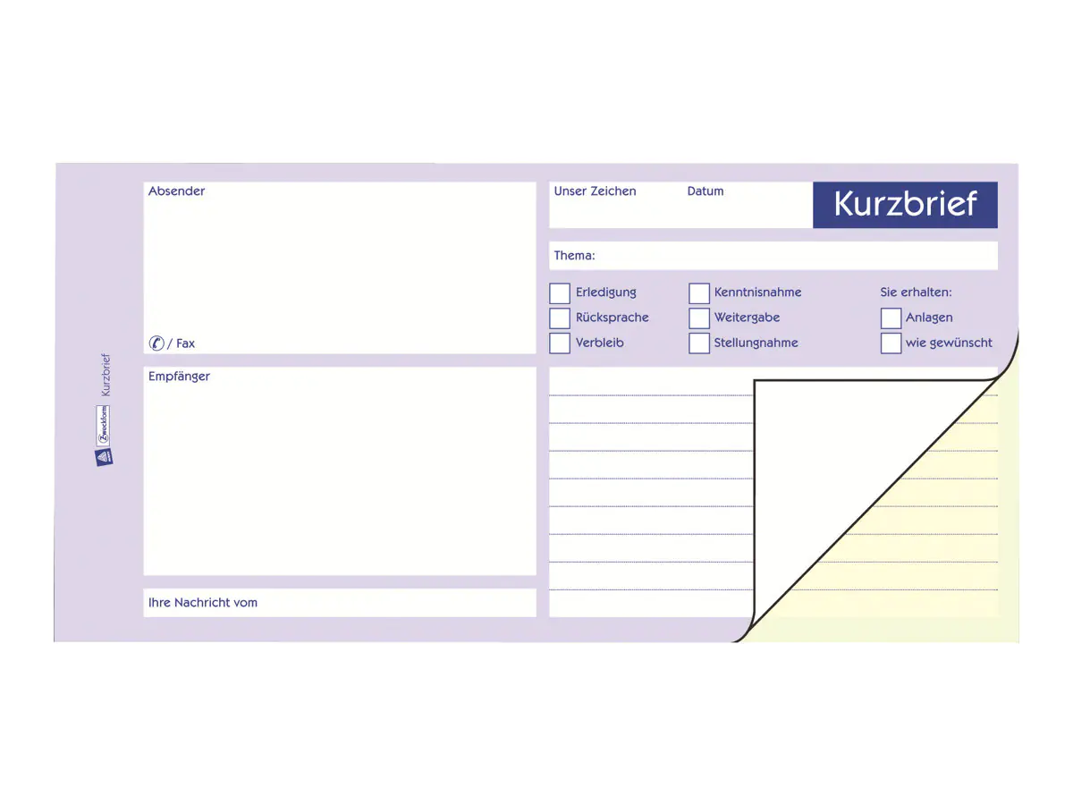 Nie mehr etwas vergessen - mit dem Kurzbrief von Avery Zweckform. Der Kurzbrief enthält bereits die wichtigsten Punkte zum Ankreuzen, z.B. zur Erledigung, Rücksprache, Stellungnahme, etc.