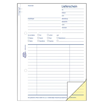Lieferscheine für garantierte Erfassung alle wichtigen Informationen - mit Kopie für Ihre Unterlagen!