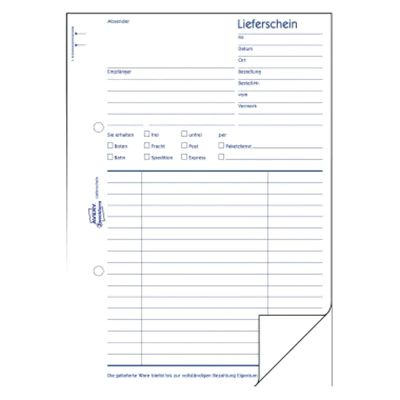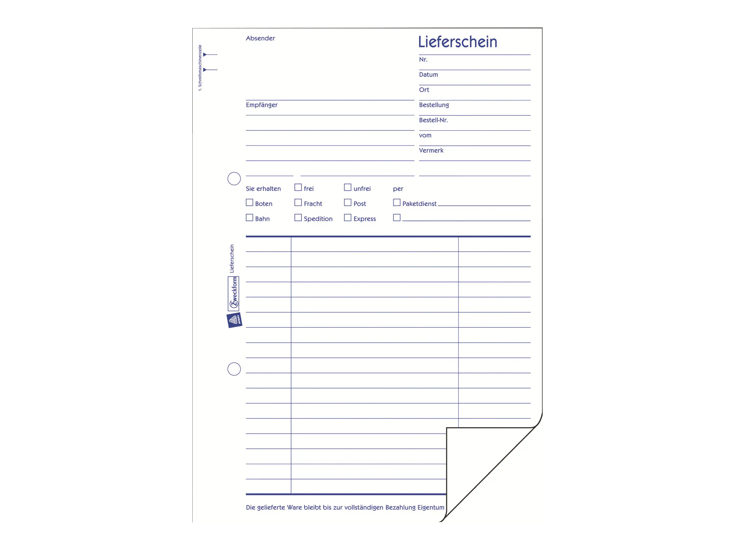 Die Lieferscheine von Avery Zweckform helfen Ihnen dabei zu dokumentieren welche Produkte bzw. Waren Sie geliefert oder empfangen haben. Die Liefer-/ Versandart ist bereits vorgegeben und kann angekreuzt werden.