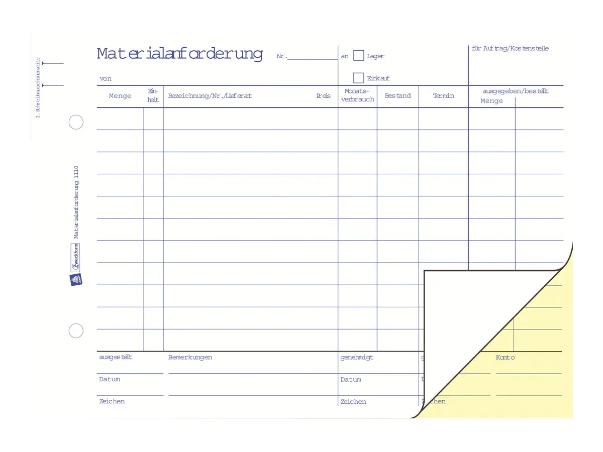 Die Materialanforderung von Avery Zweckform sorgt für bessere interne Organisation und Abläufe. Durch die einfache und praxisgerechte Gestaltung eignet sich die Materialanforderung besonders gut für den Materialbedarf an Lager oder Einkauf.