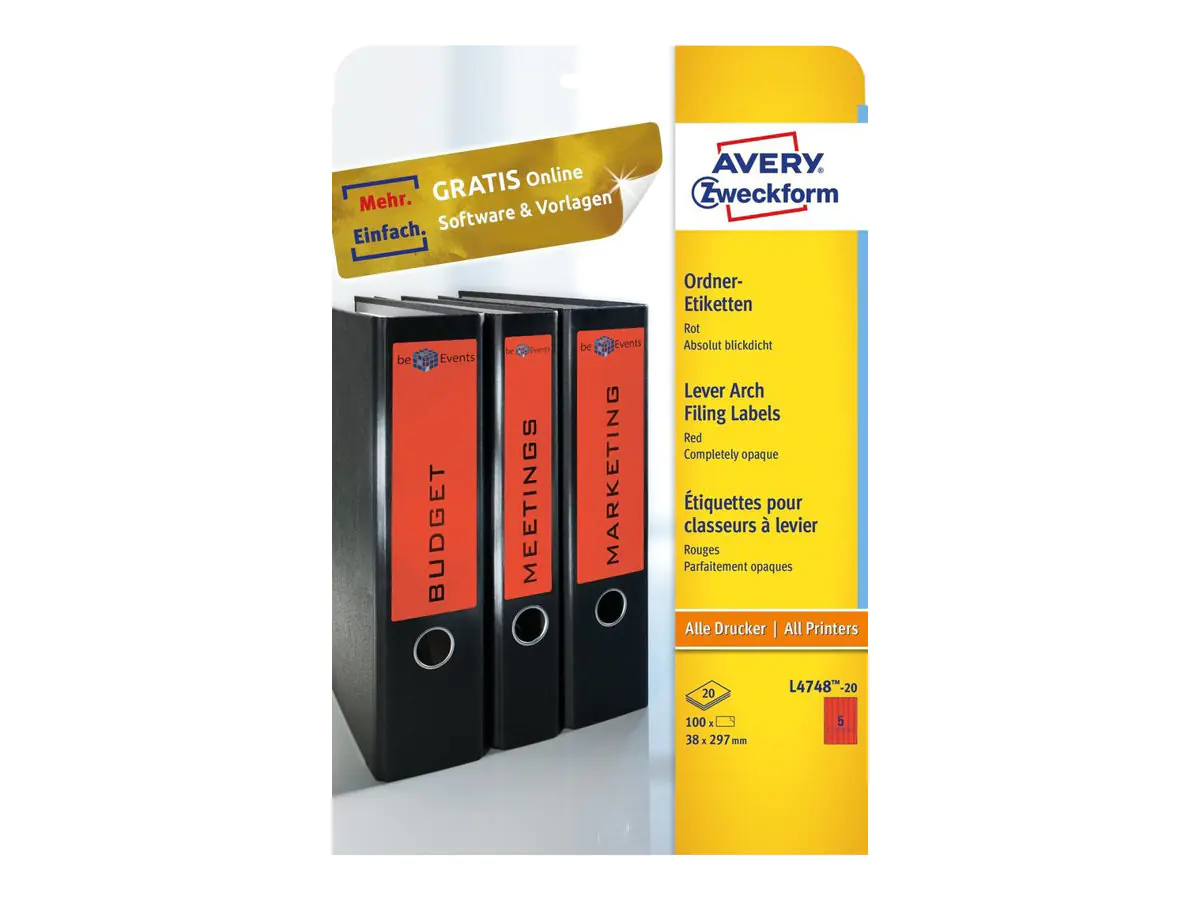 Die einzigartige ultragrip-Technologie auf der Rückseite des Bogens garantiert präzisen Druckereinzug und staufreies Drucken. Halten Sie Ordnung in Ihren Unterlagen mit bedruckbaren Ordner-Etiketten. Durch das blickdichte Material können Sie alte Ordner erneut verwenden. Die alte Beschriftung scheint nicht durch. Die Rückenschilder lassen sich mit allen gängigen Druckern und Kopierern bedrucken. Gestalten und bedrucken Sie die Ordner-Etiketten mit unserer kostenlosen und benutzerfreundlichen Software.