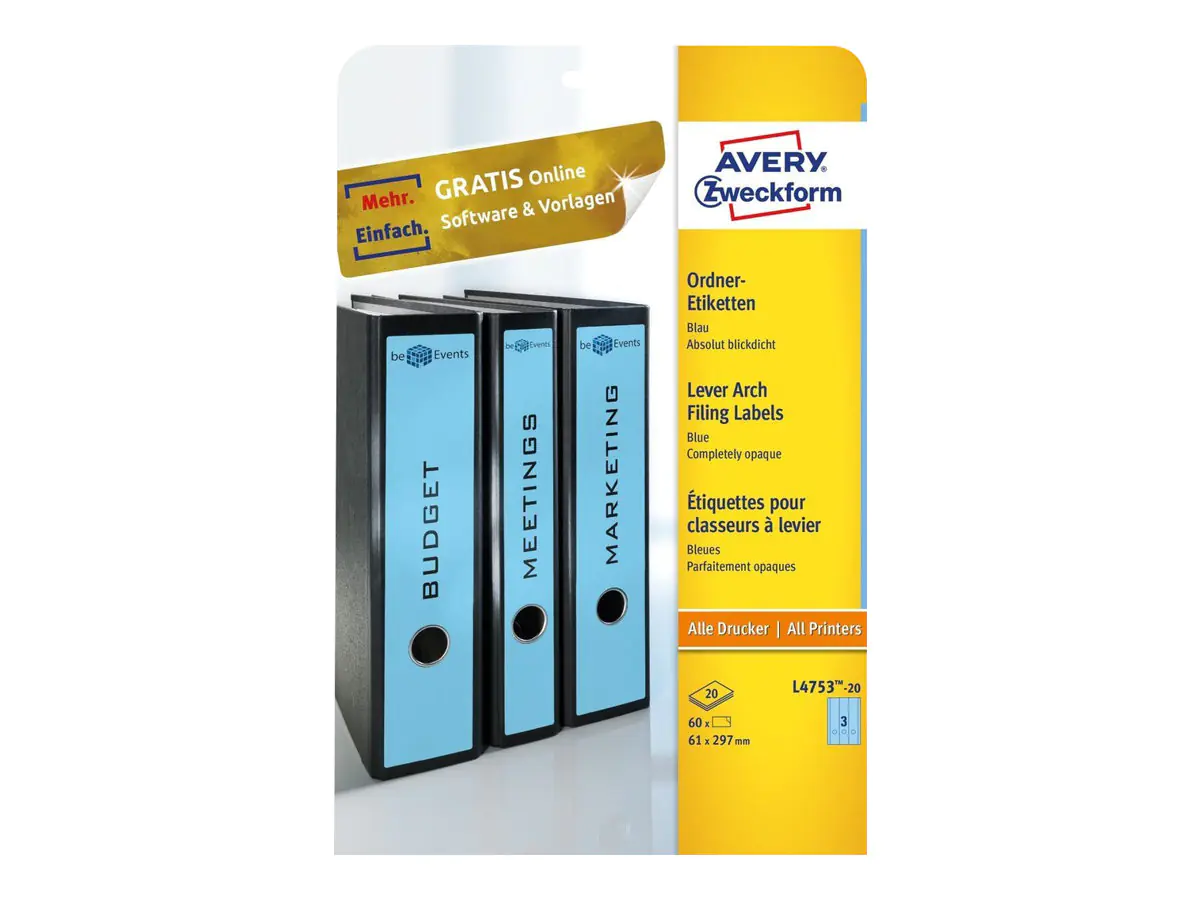 Avery Zweckform Ordneretikett L4753-20 lang/breit bl 60 St./Pack.