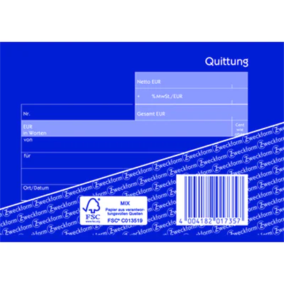 Bestätigen Sie den Verkauf von Waren oder Dienstleistungen mit den Quittungen von Avery Zweckform. Die Quittung ist mit einem feinen, netzartigen Hintergrunddruck ausgestattet. Somit ist die Quittung garantiert Fälschungssicher. Profitieren Sie von der langjährigen Erfahrung vom Formularexperten Avery Zweckform.