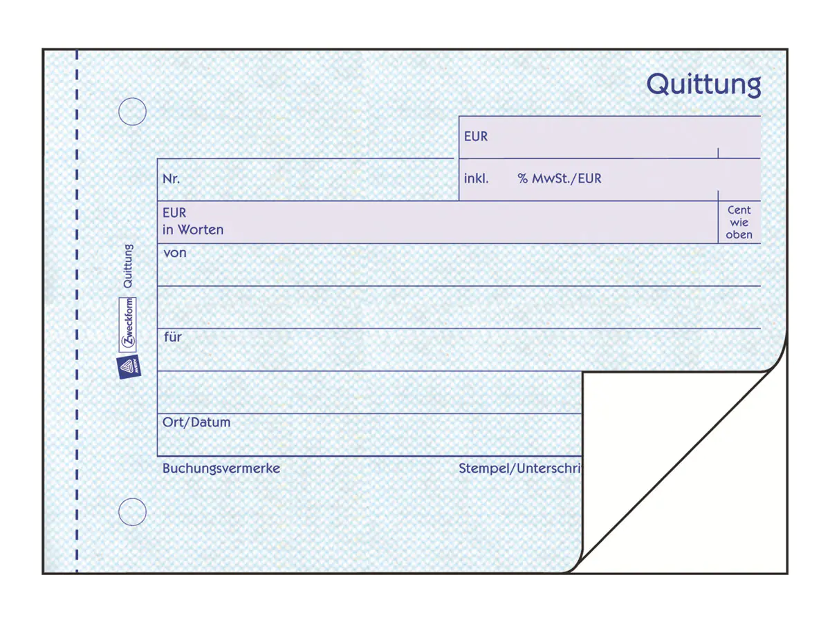 Bestätigen Sie den Verkauf von Waren oder Dienstleistungen mit den Quittungen von Avery Zweckform. Die Quittung, inklusive MwSt. ist mit einem feinen, netzartigen Hintergrunddruck ausgestattet. Somit ist die Quittung garantiert fälschungssicher. Profitieren Sie von der langjährigen Erfahrung vom Formularexperten Avery Zweckform.