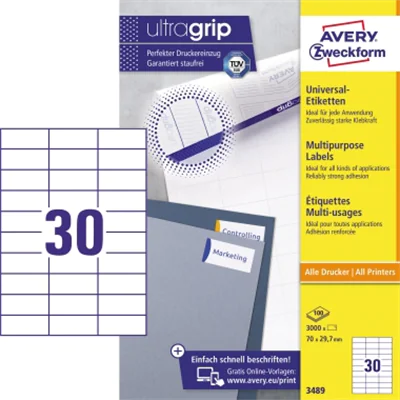 Ideal als Adressetiketten oder zum Auszeichnen von Waren. Überzeugen mit einem klaren Druckbild ohne Verwischen. Dank der innovativen ultragrip-Technologie können Sie sich auf einen ultrapräzisen Druckereinzug und absolut staufreien Druckerdurchlauf verlassen. Gestalten und drucken Sie Ihre Aufkleber schnell und einfach - mit den kostenlosen Avery Zweckform Etiketten Vorlagen und Software-Lösungen unter www.avery.eu/print.