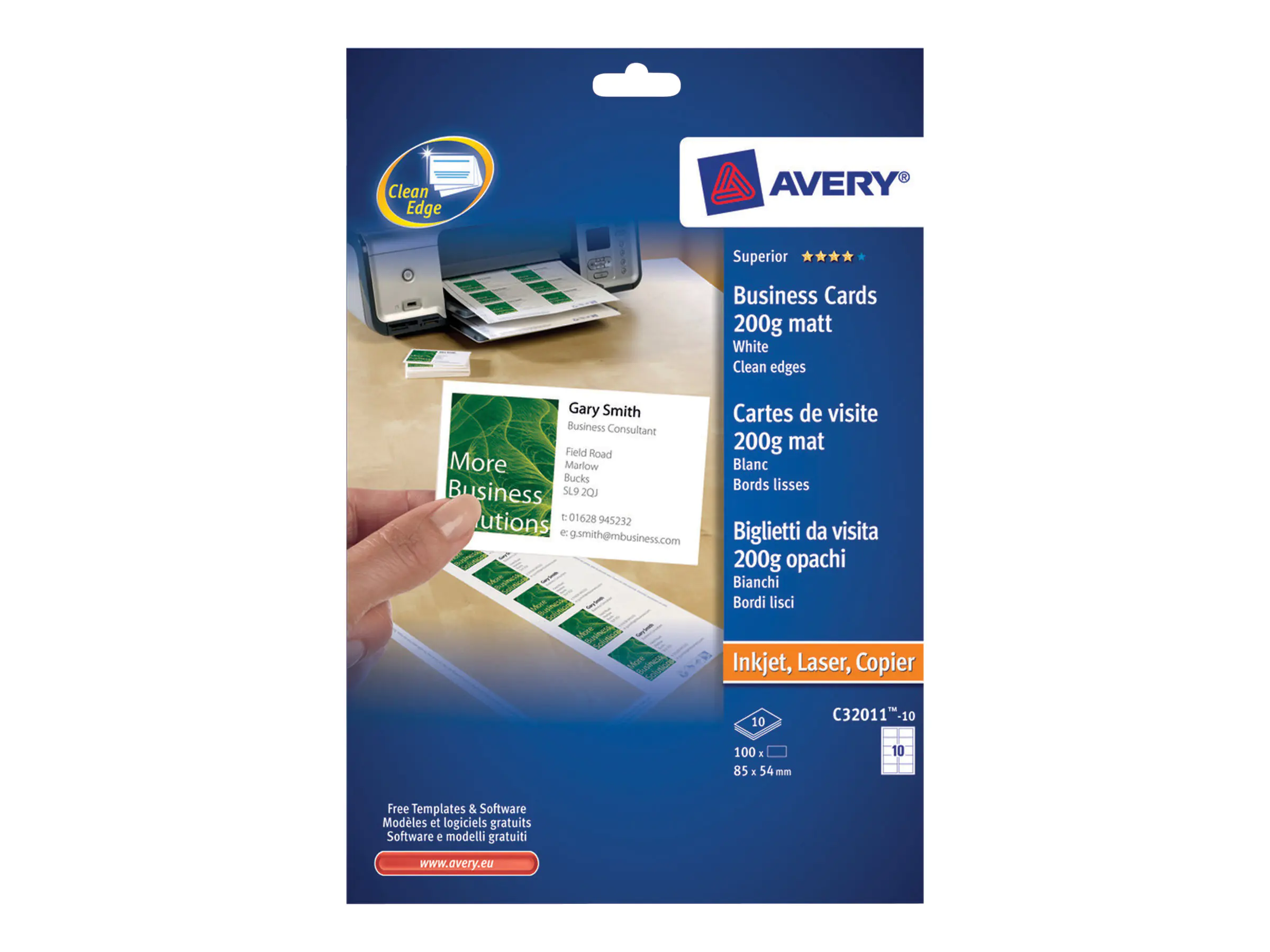 Gestalten und drucken Sie Ihre Visitenkarten selbst und vermeiden Sie Wartezeiten bei externen Druckereien! Die Superior Visitenkarten von Avery Zweckform garantieren professionelle Druckqualität auf allen gängigen Druckertypen. Die einseitig bedruckbare Visitenkarte hat dank patentierter Quick&CleanT Technologie absolut glatte Kanten. Mit der Avery Zweckform Software Design & Print Online erstellen und drucken Sie Ihre Visitenkarten schnell und einfach am eigenen PC!
