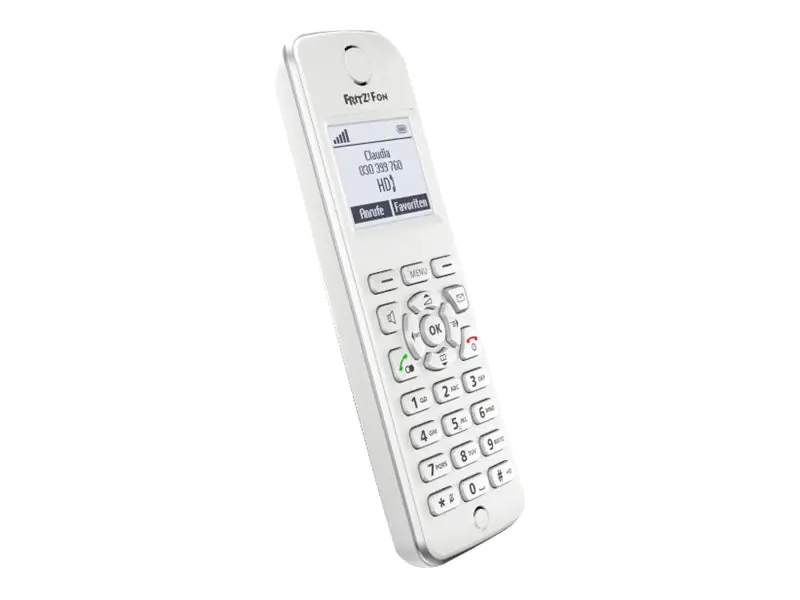 Das ergonomische Schnurlostelefon FRITZ!Fon M2 ist speziell für die FRITZ!Box mit DECT-Basisstation konzipiert. Es besticht durch sein edles Design, die erstklassige Akustik und das Freisprechen in HD-Klangqualität. Zudem überzeugt es mit seinen zahlreichen Internet- und Mehrwertdiensten wie der Bearbeitung von E-Mails, dem Empfang von Internetradio sowie dem Abonnieren von News-Feeds und Podcasts.