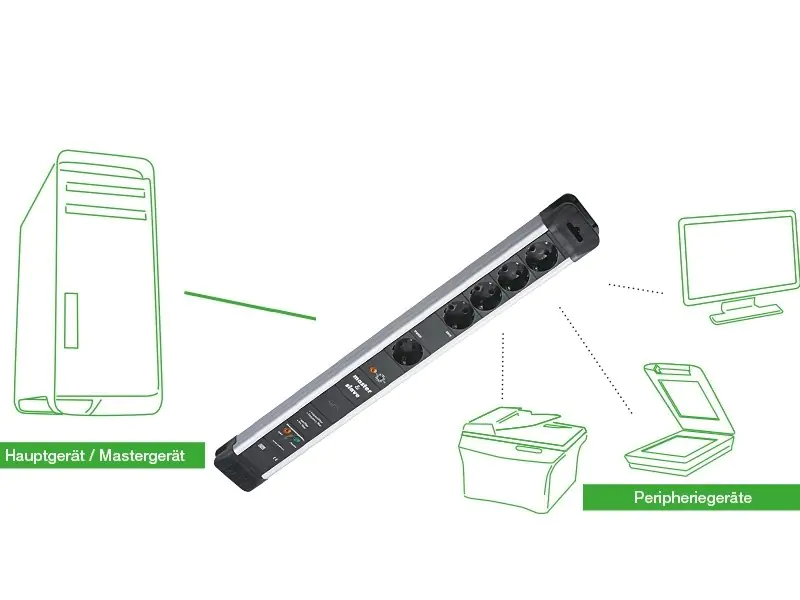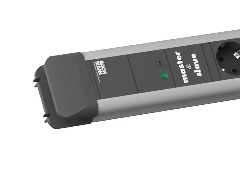 Die Bachmann CONNECTUS (330.106) Steckdosenleiste besteht aus 1x Master, 4x Slave Steckdosen. Der Vorteil an dieser Steckdosenleiste ist, dass durch die Master + Slave Elektronik automatisch Energie gespart wird. Beim Ab- und Einschalten des an der Master-Steckdose angeschlossenen Geräts wird dieses sowie auch alle Slave-Steckdosen angeschlossenen Geräte (z.B. PC, TV) automatisch ab- bzw. eingeschaltet.