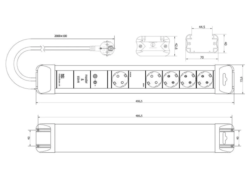 Technische Details Bachmann CONNECTUS 1x Master + 4x Slave Steckdosenleiste (330.106)