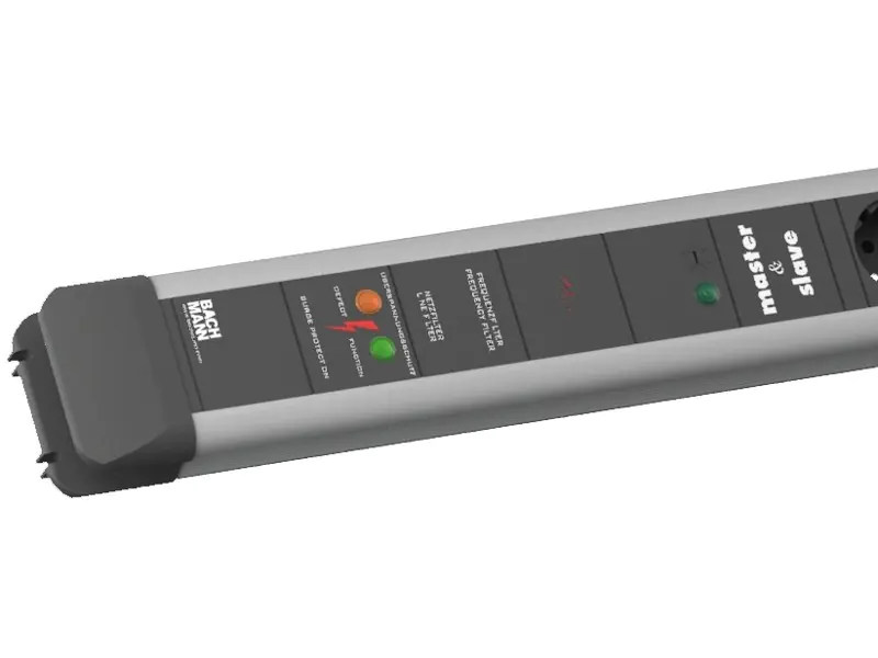 Die Bachmann CONNECTUS (330.107) Steckdosenleiste besteht aus 1x Master, 4x Slave Steckdosen und einem Überspannungsschutz sowie einem Netzfilter und Frequenzfilter. Der Vorteil an dieser Steckdosenleiste ist, dass durch die Master + Slave Elektronik automatisch Energie gespart wird. Beim Ab- und Einschalten des an der Master-Steckdose angeschlossenen Geräts wird dieses sowie auch alle Slave-Steckdosen angeschlossenen Geräte (z.B. PC, TV) automatisch ab- bzw. eingeschaltet.