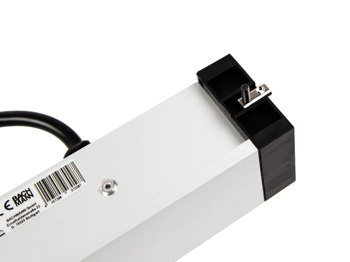 Die Bachmann DESK RAIL 941.001 ist mit 2 Steckdosen, 1 USB Doppelcharger und 1 Custom Modul zur individuellen Bestückung ausgestattet. Die Befestigung gelingt einfach durch das Anschrauben an der Frontseite, während Daten- und Stromzuleitungen von unten erfolgt. Die Bachmann DESK RAIL ist, dank der Universalaufnahme, nahezu mit allen Standard-Relingsysteme kompatibel.