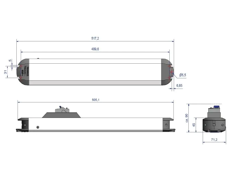 - Außenmaße (LxBxH): 516 x 71 x 83 mm