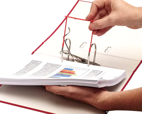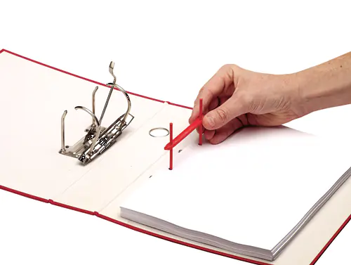 Zweiteiliger Clip zur schnellen und einfachen Entnahme von Dokumenten aus Ordnern, hält Dokumente zur weiteren Archivierung geordnet zusammen.