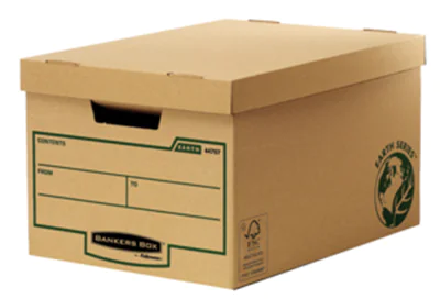 Stabile Archivbox dank doppeltem Boden und Trageseiten. Geeignet für 5 x 80mm Bankers Box® Earth Series Archivschachteln.