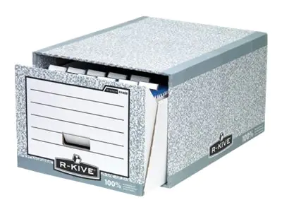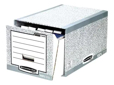 Extra stabile Konstruktion mit verstärktem Gehäuse UND verstärkter Schublade. Einfacher Aufbau. Geeignet zur Ablage von Bankers Box System A4 Archivschachteln, Ordnern und Hängemappen. Bis zu 6 Einheiten stapelbar. Hergestellt aus FSC zertifiziertem 100% recyceltem Karton und 100% wieder verwertbar.