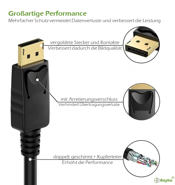 Entdecken Sie die ultimative Verbindung mit dem Bayko PERFORMANCE DisplayPort 1.2 Anschlusskabel.
