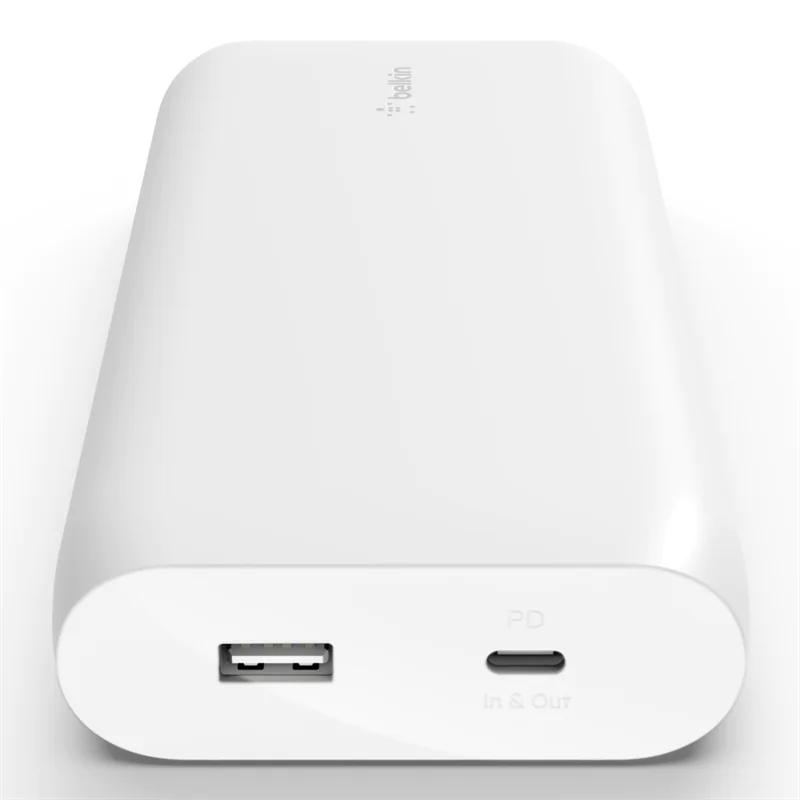 Belkin BOOST CHARGE - Powerbank - 20000 mAh - 30 Watt - Fast Charge, PD - 2 Ausgabeanschlussstellen (USB, USB-C) - weiß