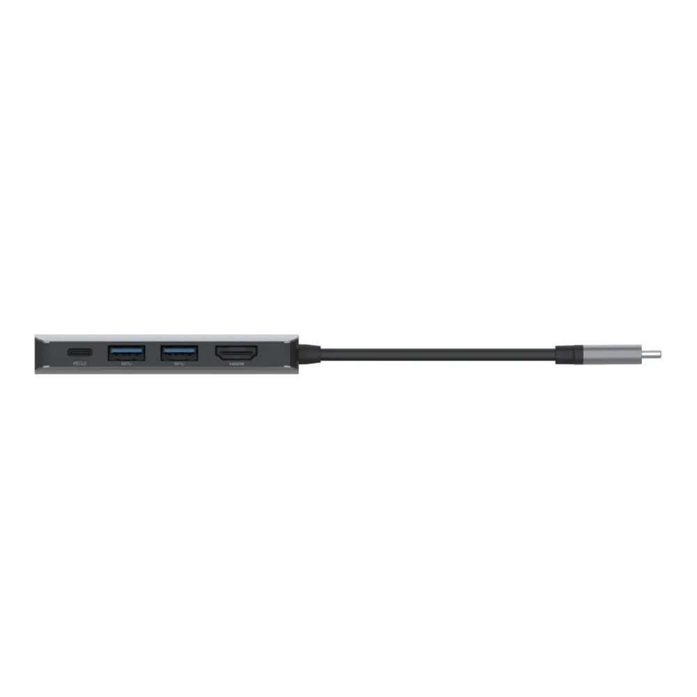 - Wandeln Sie einen einzigen USB-C-Anschluss in einen HDMI 1.4-Anschluss, zwei USB-A 3.0 BC1.2-Anschlüsse und einen USB-C PD-Anschluss um