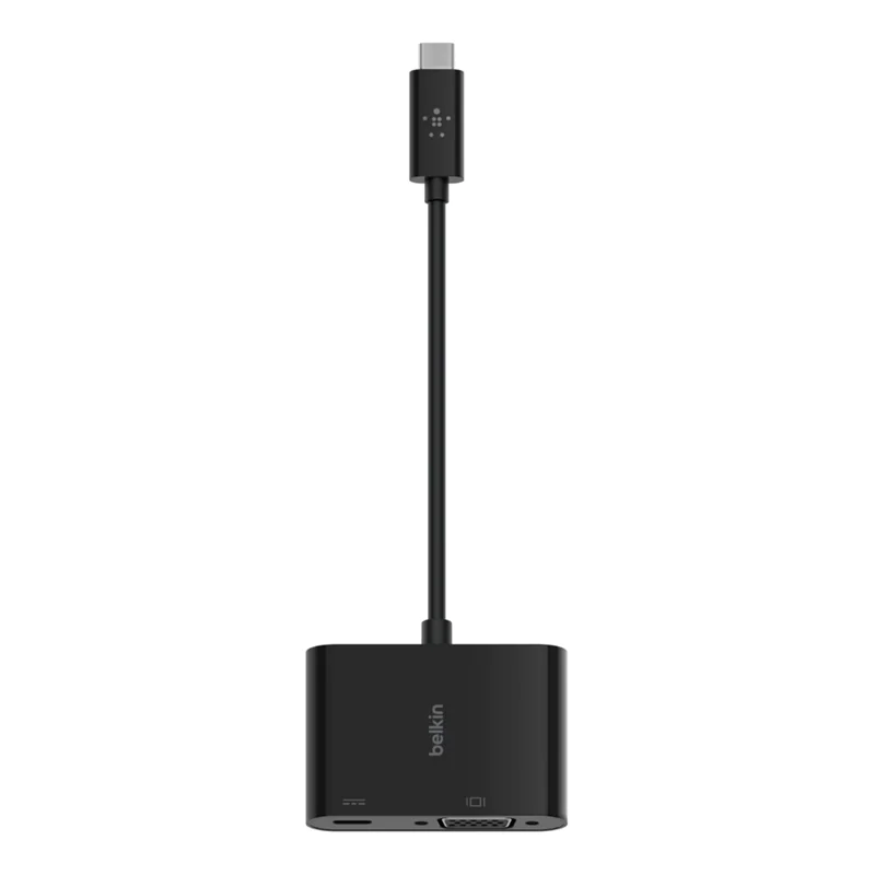 Belkin USB-C to VGA + Charge Adapter - Videoadapter - USB-C männlich zu HD-15 (VGA), USB-C (nur Spannung) weiblich - Schwarz - 1080p-Unterstützung, USB Power Delivery (60W)