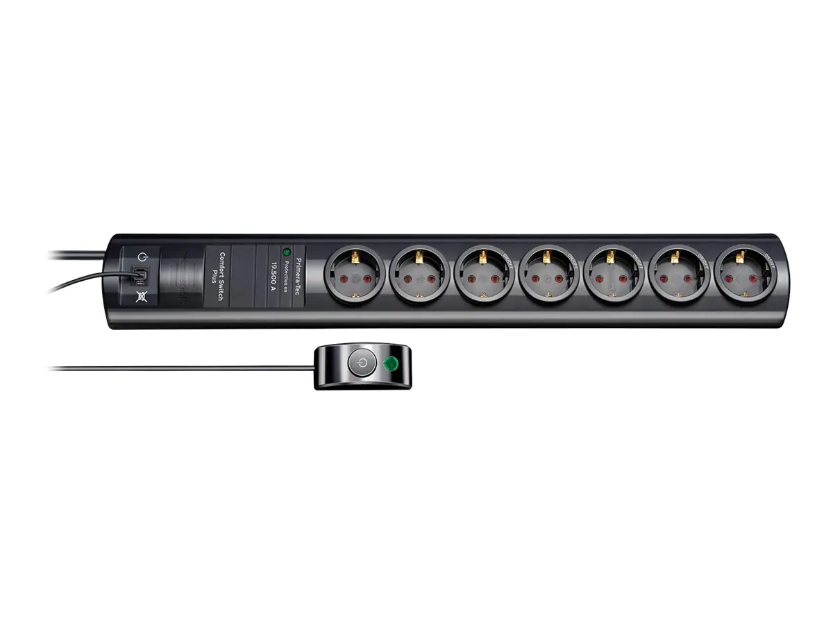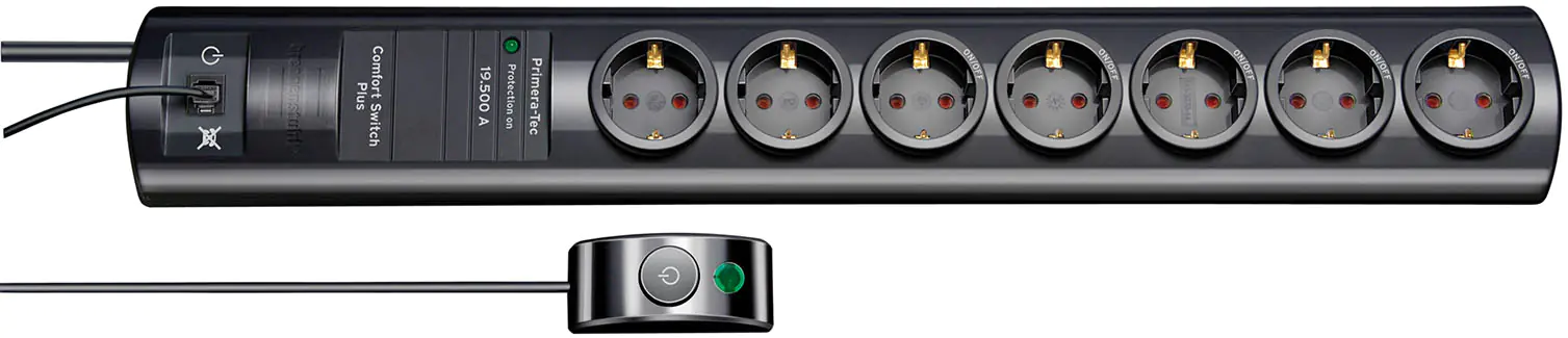 Beschreibung | Brennenstuhl Primera-Tec Comfort Switch Plus Überspannungsschutz - Wechselstrom 250 V - 3500 Watt - Ausgangsanschlüsse: 7 - 2 m - Deutschland - Schwarz | |||
