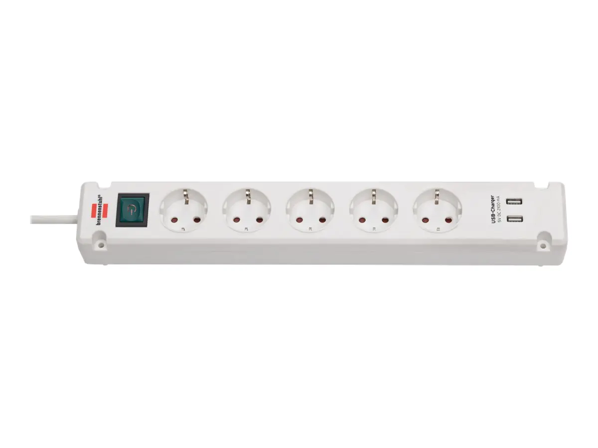 Beschreibung | Brennenstuhl 1150660325, 2P, 3 m, Weiß, IP20, 2,1 A, 800 mm Bremounta Steckdosenleiste 5-fach mit 2 USB-Ladebuchsen (Steckerleiste USB mit Schalter und 3m Kabel | |||