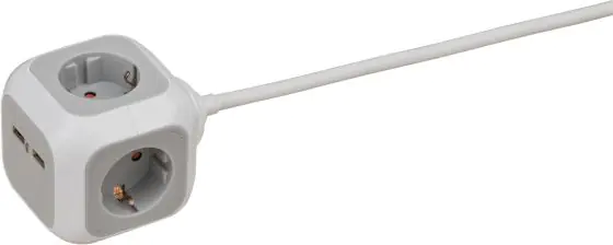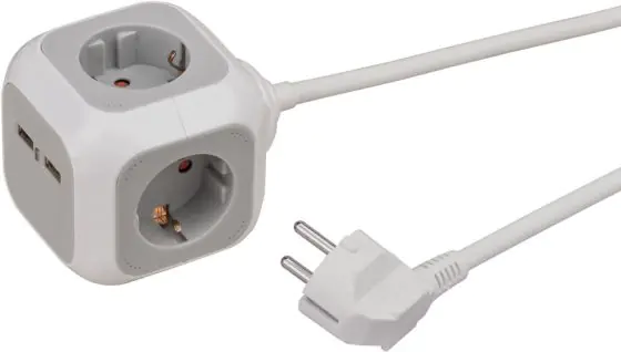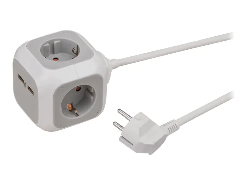 - Mehrfachsteckdose in Würfelform mit 2 USB-Ladebuchsen - Gesamtladestrom für schnelles Aufladen
