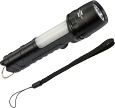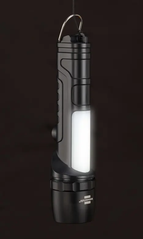 LED Taschenlampe mit extrem heller CREE LED (vorne) und zusätzlicher COB LED (seitlich) eignet sich perfekt als Warnlicht und Notbeleuchtung. Taschenlampe mit Seitenlicht und 8 verschiedenen Licht-Modi, welche in Sequenzen (Sequenzen: Spotlicht vorne 100 % - 20 %, Flächenlicht seitlich 100 % - 40 % - rot- rot blinken - aus) oder alternativ über eine Direktsteuerung (Direktsteuerung: Spotlicht vorne 100 % oder Flächenlicht rotblinken) über einen Schalter bedient werden kann. LED Taschenleuchte mit praktischem 180° einklappbaren Haken und Magnet - perfekte Voraussetzung für eine flexible Befestigung an bspw. Metalloberflächen. Die batteriebetriebene Taschenlampe eignet sich dank der Schutzart für die Verwendung in Außenbereichen, z. B. beim Camping.