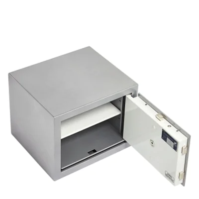 Der Tresor Karat MT 640 K mit Widerstandsgrad 0 (N) bietet mit seinem dreiwandigen Korpus robusten Schutz gegen Aufbruchsversuche. In der doppelwandigen Tür des Karat MT 640 K sorgt eine sieben Millimeter starke Platte aus SM-Stahl für Schutz. Durch das verwendete Feuerschutzmaterial (nach DIN 4102-A1) und einem umlaufenden Feuerfalz sind Dokumente und Bargeld im Karat für längere Zeit geschützt. Die Verriegelung erfolgt mit Vierkantbolzen (32 x 16 mm) an drei Seiten. An der Ober- und Unterseite sind die Bolzen durch eine integrierte Stahlrolle geschützt. Alles zusammen sorgt für einen beträchtlichen Zusatzschutz gegen gewaltsames Öffnen, z.B. gegen Aufbohren, Brennschneiden und Durchschlagen. Weiterer Pluspunkt in Sachen Sicherheit beim Karat MT 640 K: das thermische Notverriegelungssystem mit Durchschlagsicherung vor jedem Riegelbolzen. Ein komfortables Extra bietet das Hochsicherheits-Doppelbartschloss "SecuSafe”: Denn sollte einmal ein Schlüssel verloren gehen, kann mit einem neuen Schlüssel-Set das Schloss auf eine neue Schließung umgestellt werden. Das ist günstiger uns sicherer, als einen Schlüssel nachzumachen.