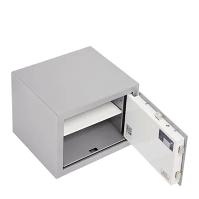 Der Tresor Karat MT 640 E FP mit Widerstandsgrad 0 (N) bietet mit seinem dreiwandigen Korpus robusten Schutz gegen Aufbruchsversuche. In der doppelwandigen Tür des Karat MT 640 E FP sorgt eine sieben Millimeter starke Platte aus SM-Stahl für Schutz. Durch das verwendete Feuerschutzmaterial (nach DIN 4102-A1) und einem umlaufenden Feuerfalz sind Dokumente und Bargeld im Karat für längere Zeit geschützt. Die Verriegelung erfolgt mit Vierkantbolzen (32 x 16 mm) an drei Seiten. An der Ober- und Unterseite sind die Bolzen durch eine integrierte Stahlrolle geschützt. Alles zusammen sorgt für einen beträchtlichen Zusatzschutz gegen gewaltsames Öffnen, z.B. gegen Aufbohren, Brennschneiden und Durchschlagen. Weiterer Pluspunkt in Sachen Sicherheit beim Karat MT 640 E FP: das thermische Notverriegelungssystem mit Durchschlagsicherung vor jedem Riegelbolzen. Die moderne Tresor-Elektronik "SecuTronic“ TRSE 12 H FP bietet Touch-Bedienfeld sowie Grafik-Display und kann von bis zu 30 Personen genutzt werden (10 mit Code, 20 mit Fingerprint). Die Tresor-Elektronik verfügt außerdem über eine individuelle Öffnungsverzögerung, Sperrzeiten und ist per Micro-SD-Karte updatefähig.