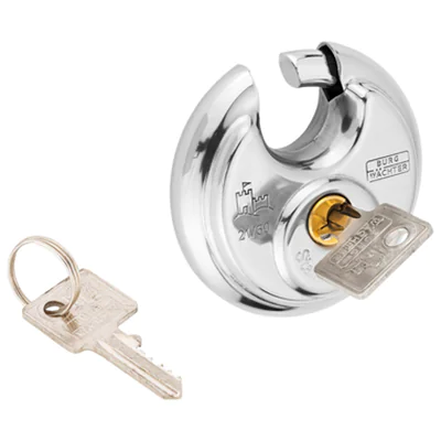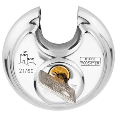 Aufgrund der besonderen Scheiben-Form und der Bügelkonstruktion gibt es kaum Angriffspunkte für die üblichen Aufbruchswerkzeuge. Denn der Bügel ist zum großen Teil im Schlosskörper versteckt. Des Weiteren ist der Bügel vom Circle 21 gehärtet und verchromt. Übrigens zeigt das der geprägte Schriftzug "Hardened“ auf dem Bügel. Sie öffnen mit einem Schlüssel mehrere Rundbügelschlösser. Somit hat die Suche nach dem passenden Schlüssel endlich ein Ende. Durch den Präzisions-Stiftzylinder öffnen und schließen Sie das Vorhangschloss äußerst bequem.