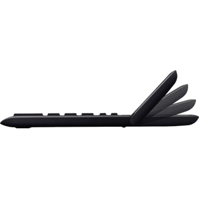 Display mit Rechenbefehl-Anzeige. Schwenkbares Display. Plastik-Tasten. Key Rollover.