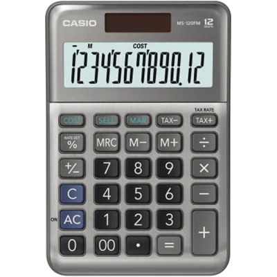 Der Casio MS-120FM Tischrechner ist für eine Vielzahl von mathematischen Anforderungen konzipiert und damit ein wertvolles Werkzeug für Berufstätige und Studenten. Er bietet eine Vielzahl von Funktionen, von grundlegenden Operationen wie Addition und Subtraktion bis hin zu Finanzberechnungen wie Kosten/Verkauf/Margen und Steuerberechnung. Die 12-stellige LCD-Anzeige mit angewinkeltem Display sorgt für gute Lesbarkeit und erhöht die Genauigkeit Ihrer Berechnungen. Mit zwei Stromversorgungsoptionen, darunter ein Solarpanel und eine Batterie, bleibt der Rechner auch bei unterschiedlichen Lichtverhältnissen einsatzbereit und gewährleistet eine konstante Leistung. Das Design des Rechners umfasst 3 Speichertasten, automatische Abschaltung und Tasten-Rollover, die ein nahtloses Rechnen ermöglichen. Das robuste Metallgehäuse und die Kunststofftasten sind für den täglichen Gebrauch ausgelegt und machen den Casio MS-120FM zu einem zuverlässigen Begleiter bei der Verwaltung von Finanzen, akademischen Arbeiten und vielem mehr.