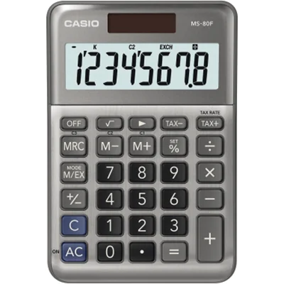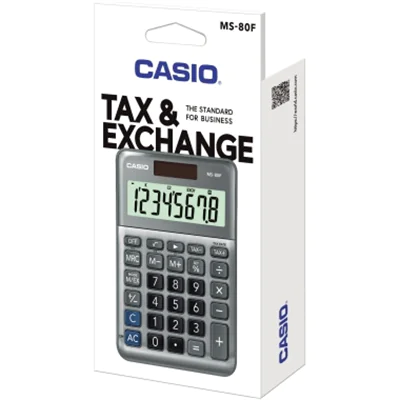 Der Casio MS-80F Tischrechner kombiniert Funktionalität mit benutzerfreundlichen Merkmalen und ist damit sowohl für den professionellen als auch für den privaten Gebrauch geeignet. Sein 8-stelliges LCD-Display, das zur besseren Ablesbarkeit angewinkelt ist, unterstützt eine breite Palette von Berechnungen, einschließlich Grundrechenarten, Finanzfunktionen wie Währungsumrechnung und wissenschaftliche Funktionen wie Quadratwurzelberechnungen. Das Gerät ist auf Effizienz ausgelegt und verfügt über 3 Speichertasten, ein Rechenzeichen und eine automatische Abschaltfunktion, um Energie zu sparen. Die duale Stromversorgung durch Solar- und Batteriebetrieb gewährleistet einen zuverlässigen Betrieb in jeder Umgebung. Das robuste Metallgehäuse des MS-80F ist für den täglichen Gebrauch ausgelegt und macht ihn zu einer langlebigen und praktischen Ergänzung für jeden Schreibtisch.