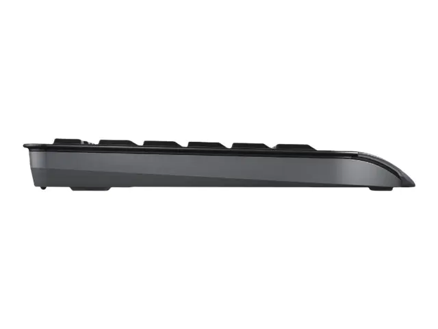 - Integrierte Handballenauflage, flache Bauhöhe Robuste Bauweise, langlebige Tastenbeschriftung 3 stabile Aufstellfüße, 10 Office-& Multimediatasten, 3 integrierte Statusanzeigen Kabellose 2,4 GHz Technologie (bis zu 10 m Reichweite), Batterielaufzeit bis zu 3 Jahre, integrierte Batteriestatusanzeige, symmetrische 6-Tasten-Maus mit umschaltbarer Auflösung (1.000/2.000 dpi), Plug&Play