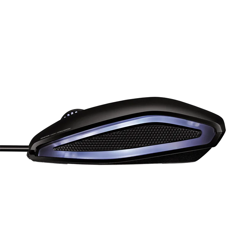 - Eindrucksvolle blaue Beleuchtung der Seitenteile und des Scroll-Rads
